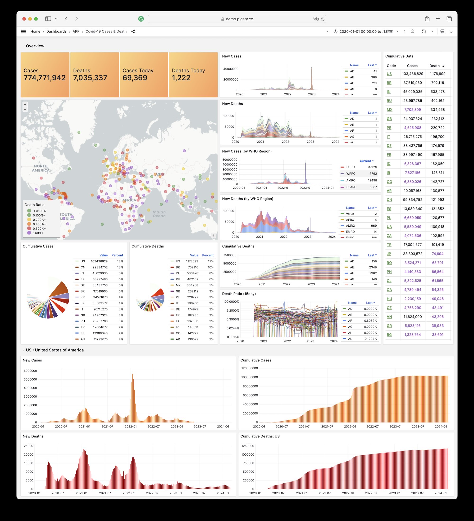 More wonderfully, you can build interactive data applications quickly in a low-code manner based on the Grafana and Postgres built into Pigsty, and even use Pigsty’s built-in ECharts panels to create more expressive interactive visualization works.