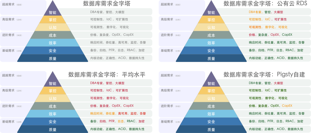 Another widespread criticism of cloud databases is their extensibility. RDS does not grant users dbsu permissions, meaning users cannot install extension plugins in the database. PostgreSQL’s charm lies in its extensions; without extensions, PostgreSQL is like cola without ice, yogurt without sugar. A more severe issue is that in some failure scenarios, users even lose the ability to help themselves, as seen in the real case of “Cloud Database: From Deleting Databases to Running Away”: WAL archiving and PITR, basic functionalities, are charged features in RDS. Regarding maintainability, some say cloud databases are convenient as they can be created and destroyed with just a few clicks, but those people have likely never experienced the ordeal of receiving SMS verification codes for restarting each database. With Database as Code style management tools, true engineers would never resort to such “ClickOps”.