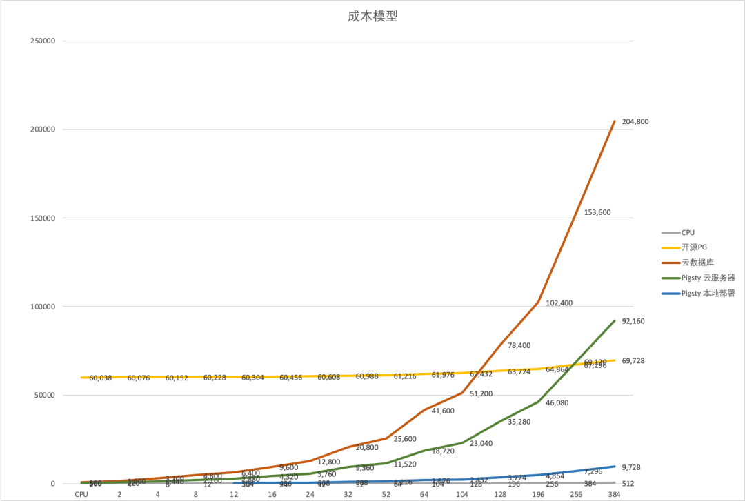 However, cloud databases are outrageously expensive, with the price for the same computing power per month being several times to over ten times higher than the corresponding hardware. For the cheaper Alibaba Cloud, the price per core·month ranges from two hundred to four hundred units, and for the more expensive AWS, it can reach seven to eight hundred or even more than a thousand.