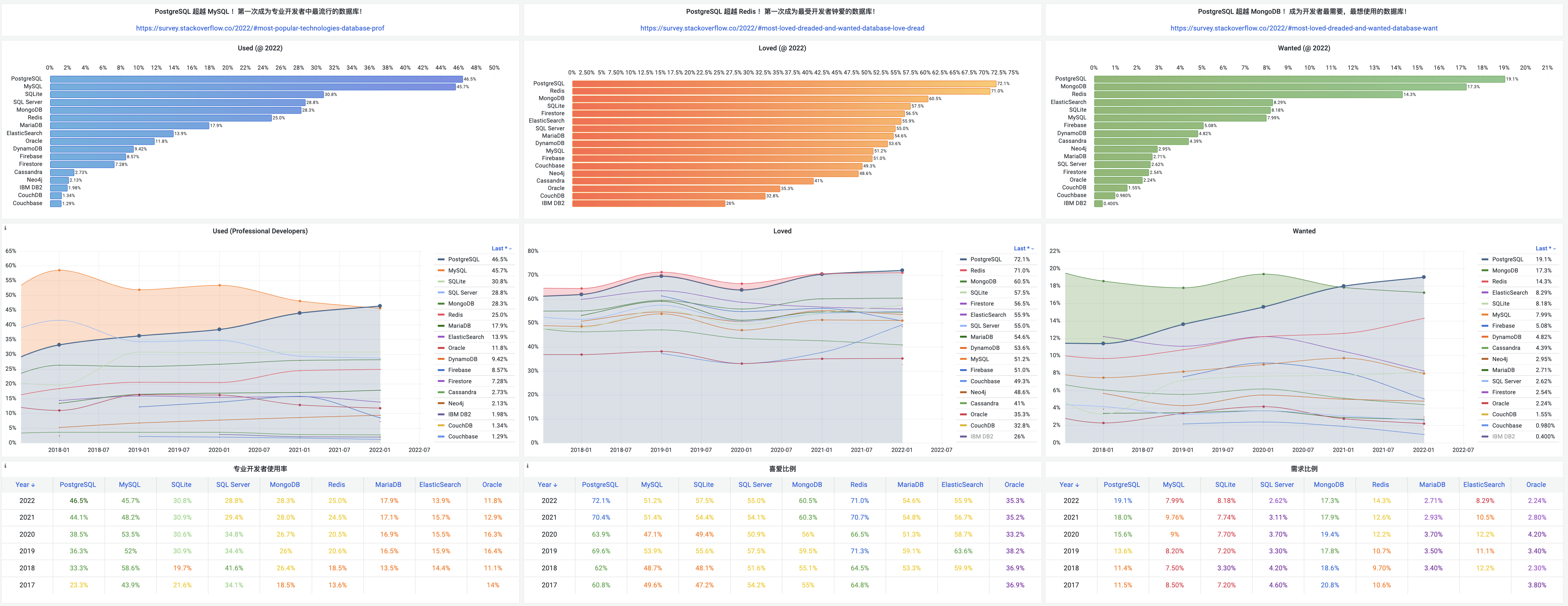 - PostgreSQL became the most commonly used database among professional developers! (Used)