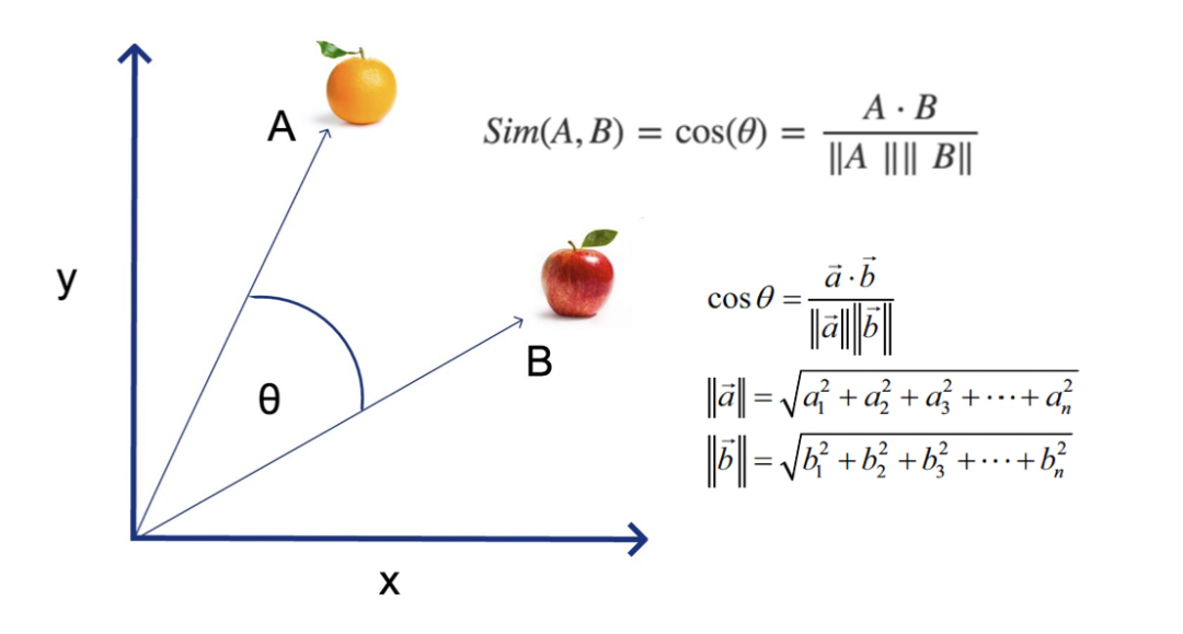 向量的余弦距离被广泛用于衡量两者的相似度