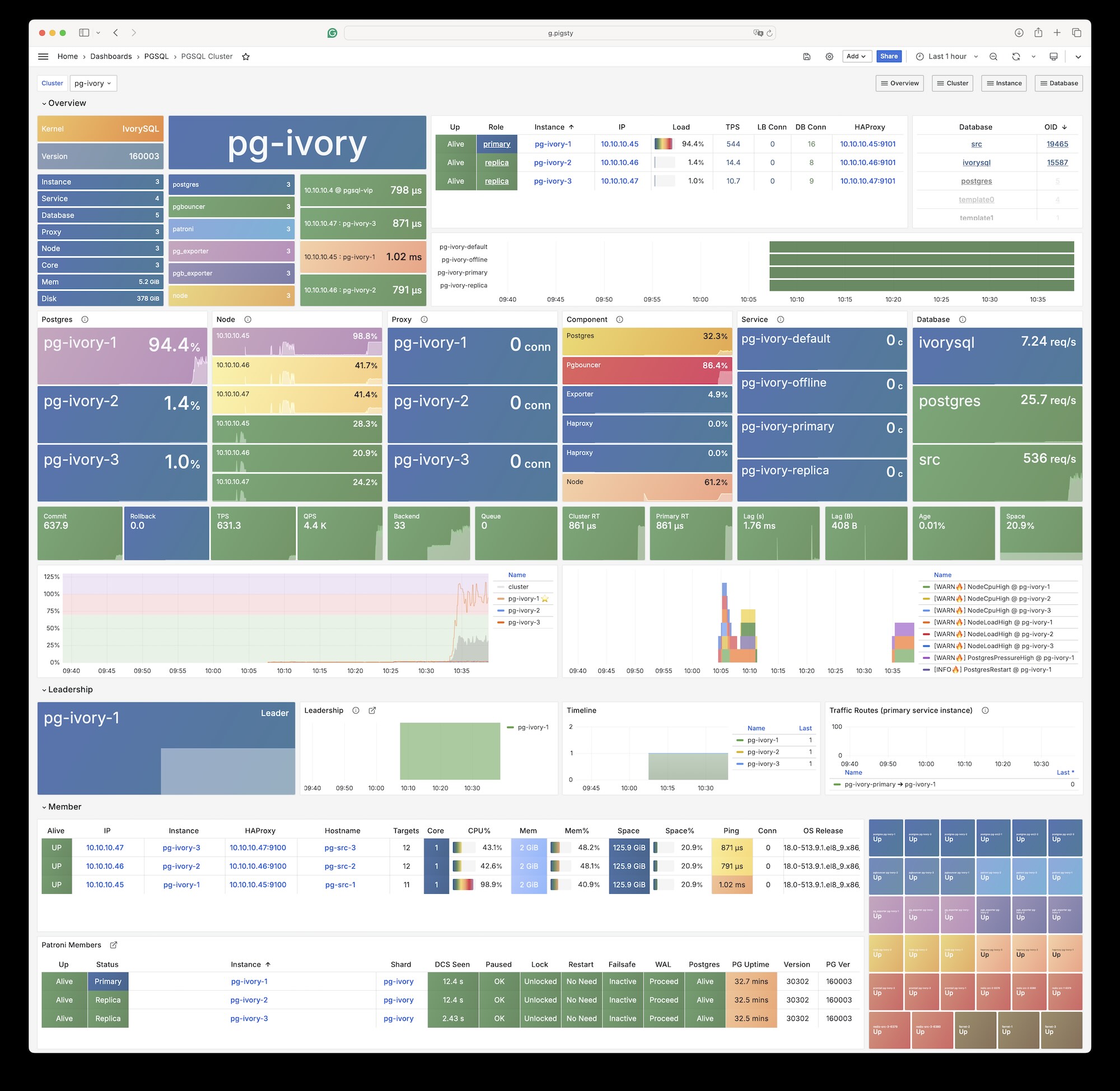 It’s that simple - just add these four lines to the global variables in the configuration file, and Pigsty will replace the native PostgreSQL kernel with IvorySQL: