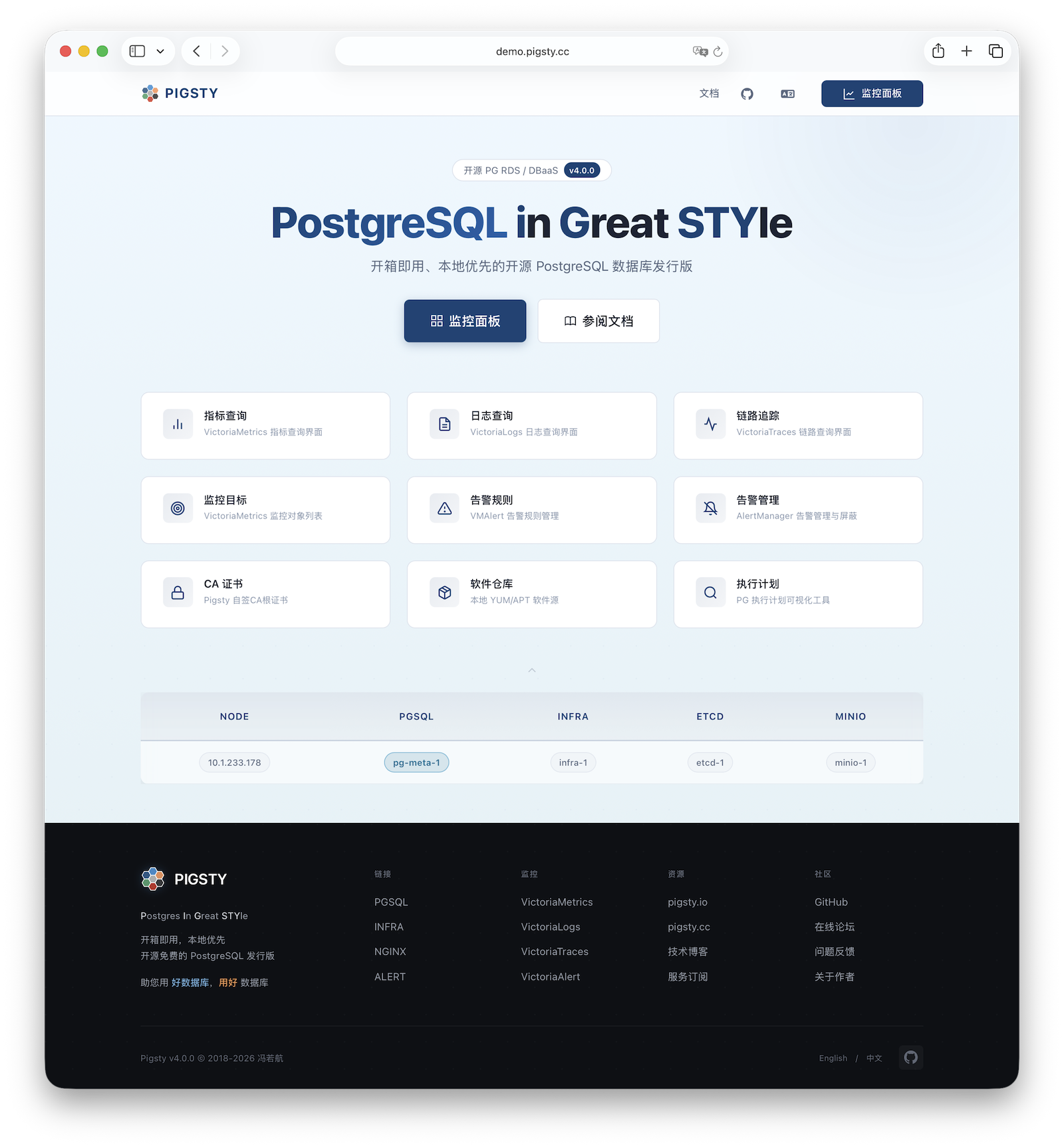 This is the Pigsty single-node install guide. For multi-node HA prod deployment, refer to the Deployment docs.